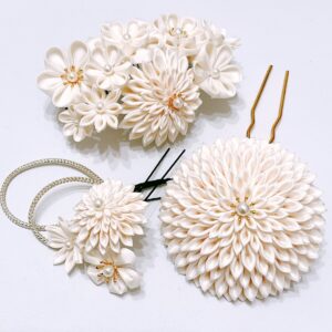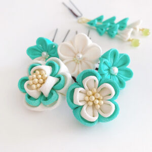 着物の色柄に合わせた色柄の柔らかい髪飾りだったり