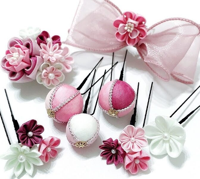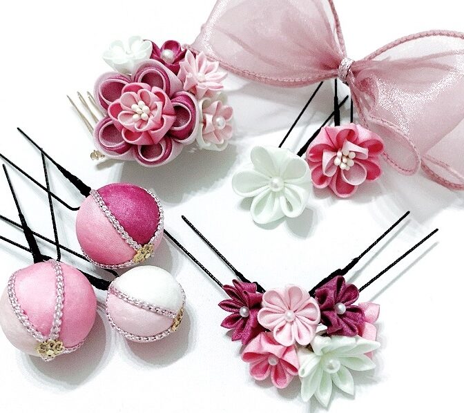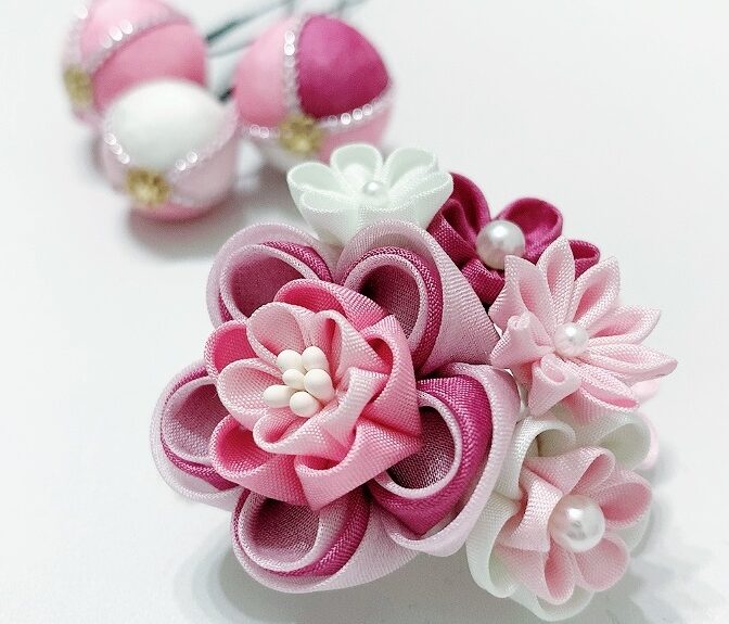 つまみ細工 髪飾り ヘアアクセサリー 成人式 七五三 ピンク