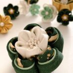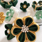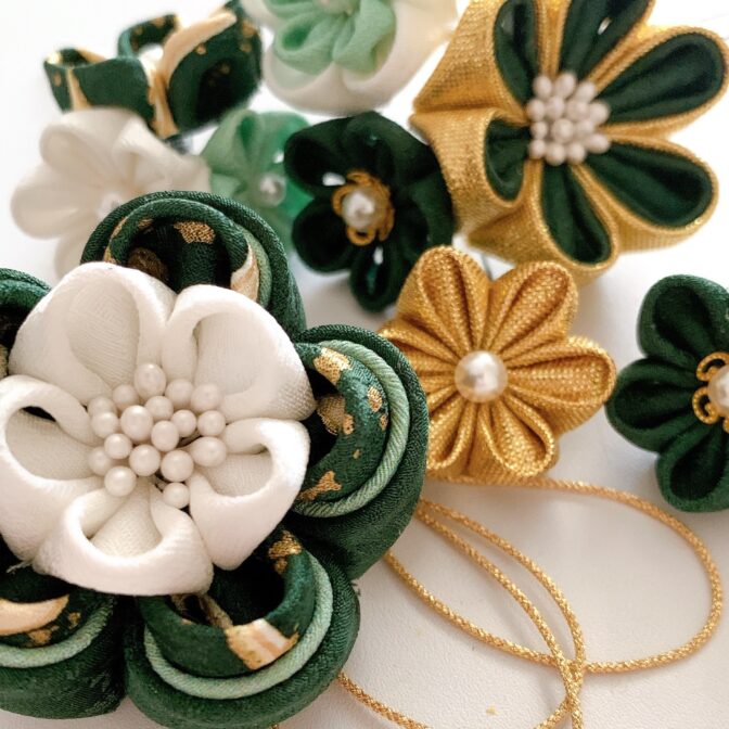 つまみ細工 髪飾り 卒業式 成人式 七五三 グリーン ゴールド